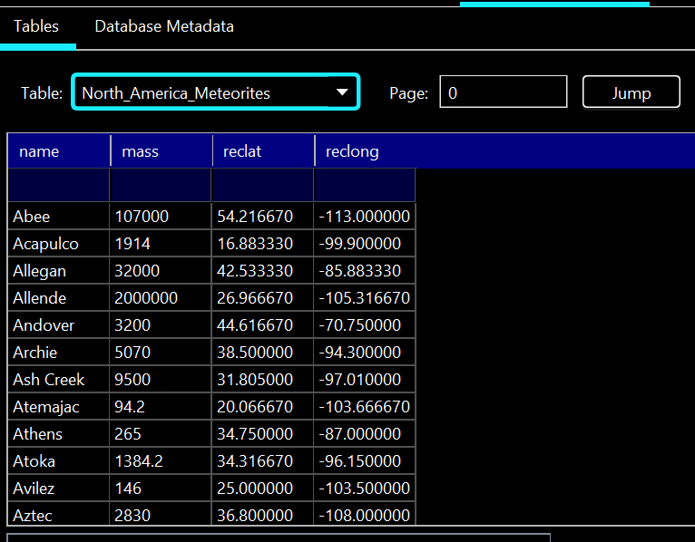 This project takes meteorite data in JSON format from a NASA website and sorts it into a database based on the coordinates of where each meteorite fell. For example, if a meteorite fell between the lateral coordinates -35.2 and 37.6 and the longitude coordinates -17.8 and 62.2, the corresponding meteorite data would be placed into the Africa and Middle East meteorites table.